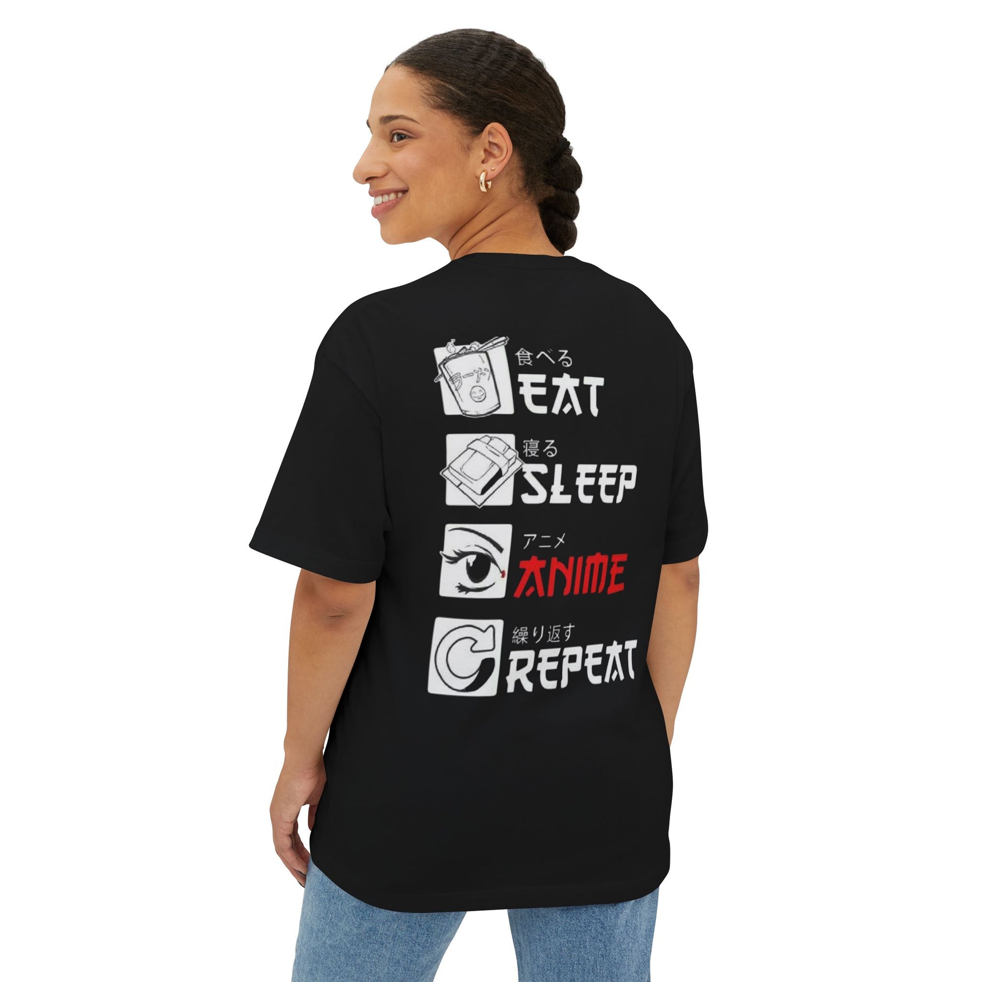 Anime Lover Oversized Tee - Eat Sleep Anime Repeat Shirt, Gift for Fans, Casual Wear, Unisex T-Shirt, Comfortable Streetwear