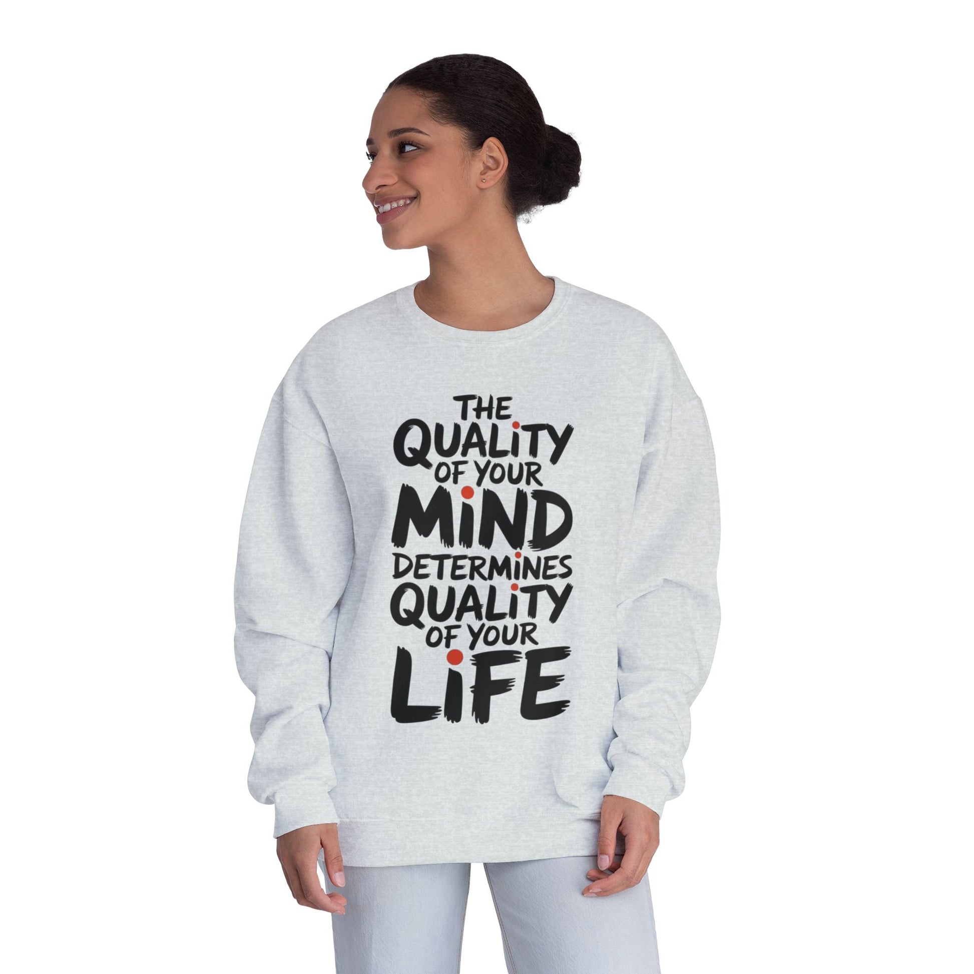 Wrap yourself in comfort with this cozy unisex crewneck sweatshirt. Its soft, medium-heavy fleece provides warmth for any season, perfect for lounging at home or a casual outing. The motivational print inspires positivity and mindfulness, making it ideal for self-care routines, yoga, or simply boosting your day. This sweatshirt is perfect for anyone who values comfort and upliftment, making it a fantastic gift for friends or family during holidays, birthdays, or as a thoughtful surprise on any special occasion.